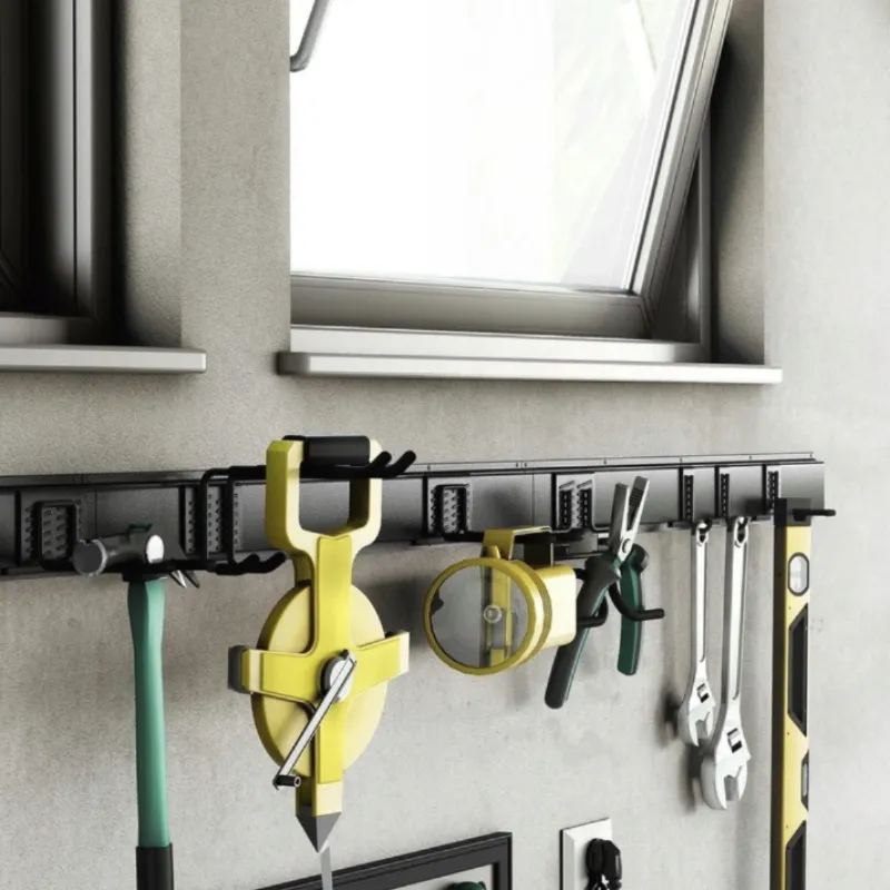 Konstrukcja haka to solidna stal — wytrzymała, odporna na odkształcenia, przystosowana do garażowych warunków. Ale najciekawsze jest wykończenie: elementy mające bezpośredni kontakt z wieszanymi przedmiotami pokryto gumową powłoką. Dzięki temu lakierowane narzędzia, węże z delikatnym oplotem czy kaski nie zbierają rys i otarć. To detal, który odróżnia nasz system od tanich haków z marketu.