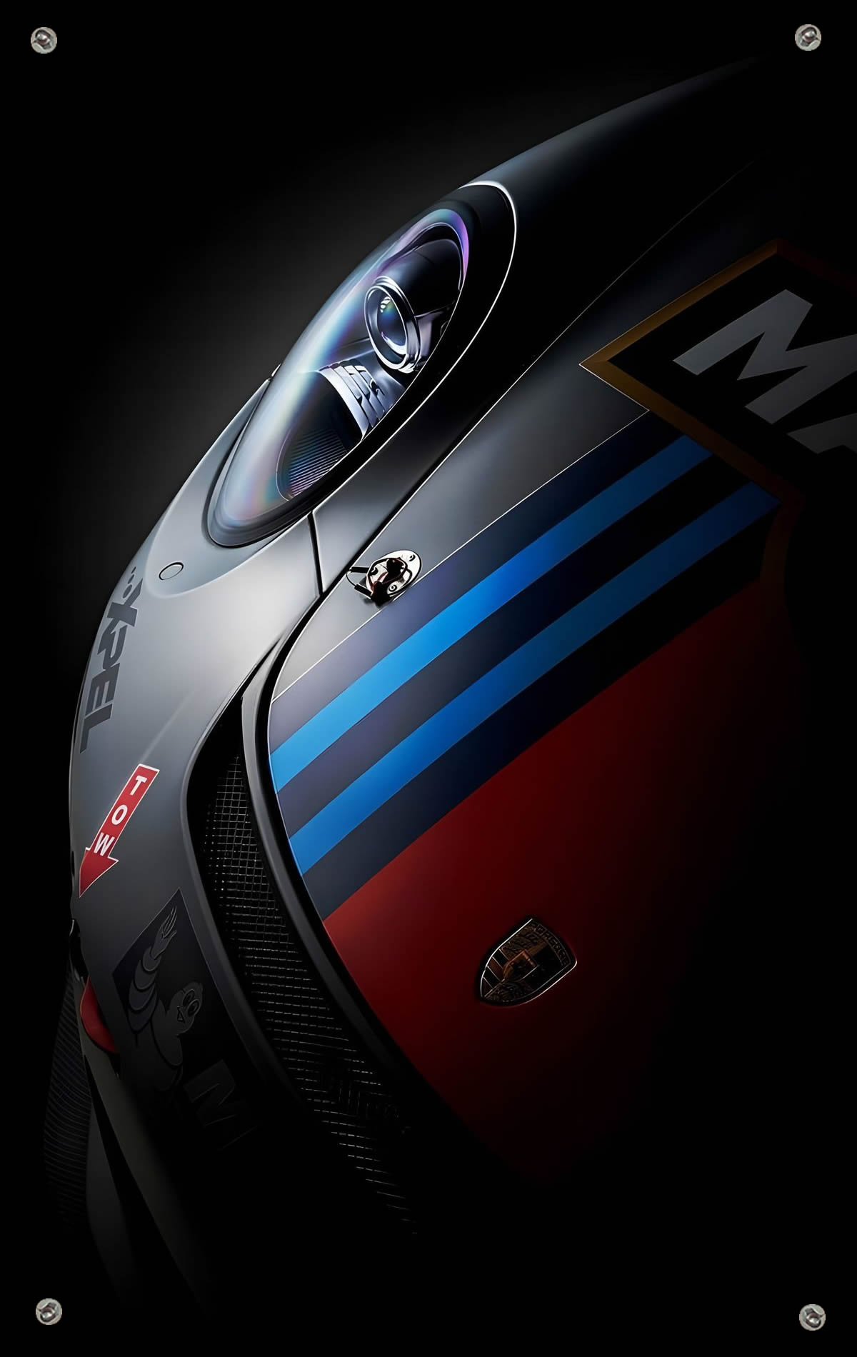 Grafika jest bardzo ładnej jakości, kolory są nasycone, wykończenie połysk. - Zdjęcie główne przedstawia wizualizację tablicy z grafiką, przykładowy i gotowy wygląd tablicy z grafiką jest na kolejnych zdjęciach w galerii (kierowca w kasku, Porsche), grafikę dopasowujemy do szerokości tablicy z zamówienia.